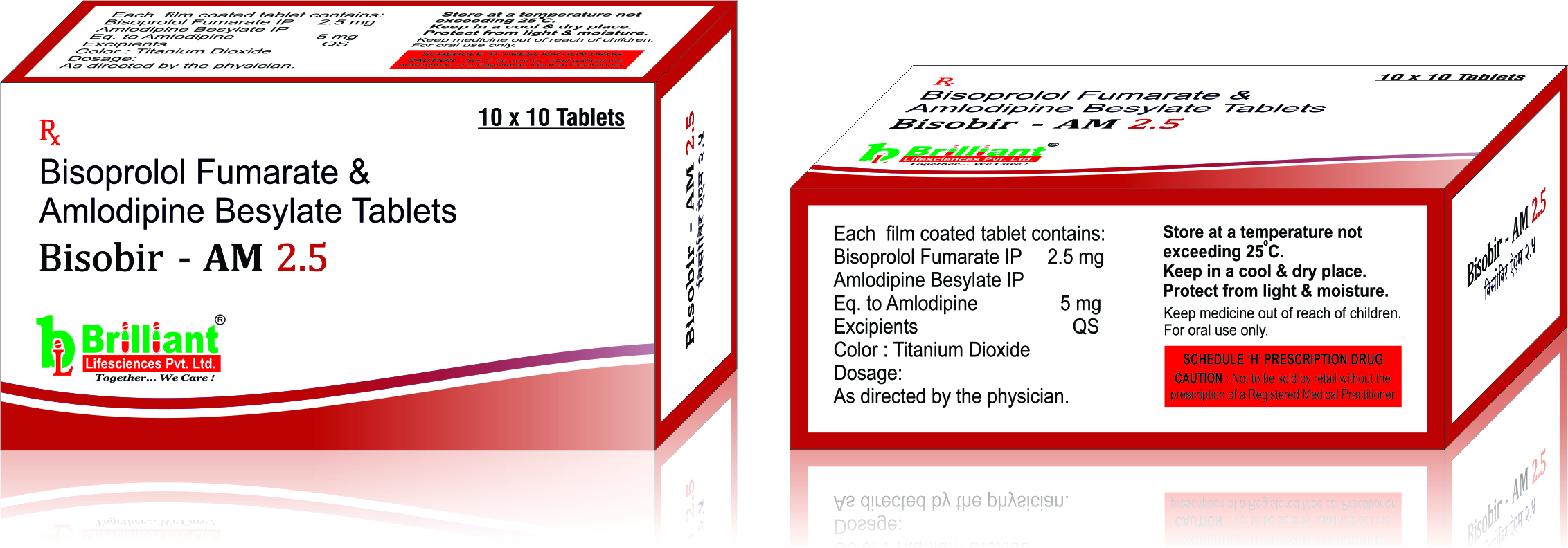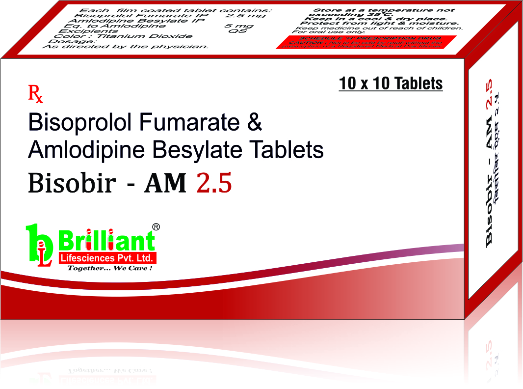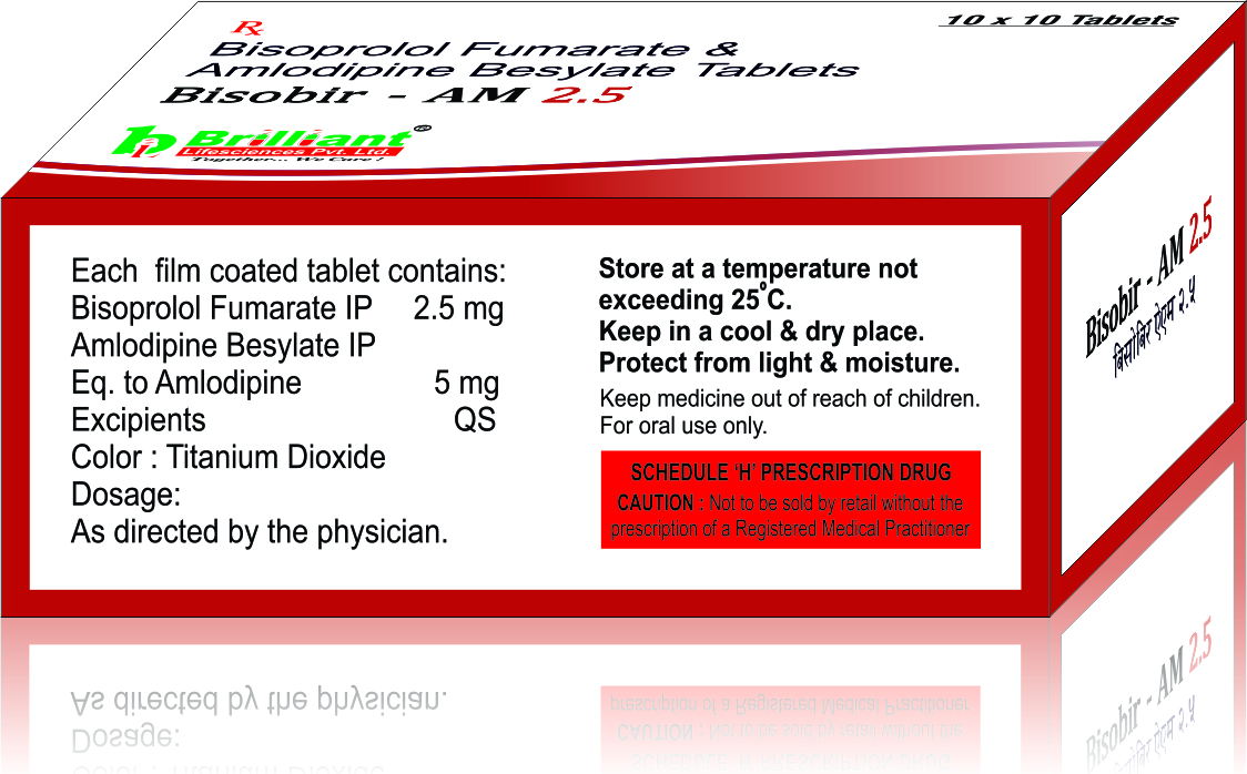 BISOBIR AM 2.5 Tablet is a combination of two medicines: Amlodipine and Bisoprolol, which lowers blood pressure effectively. Amlodipine is a calcium channel blocker which works by relaxing blood vessels while bisoprolol is a beta blocker that works specifically on the heart to slow down the heart rate.