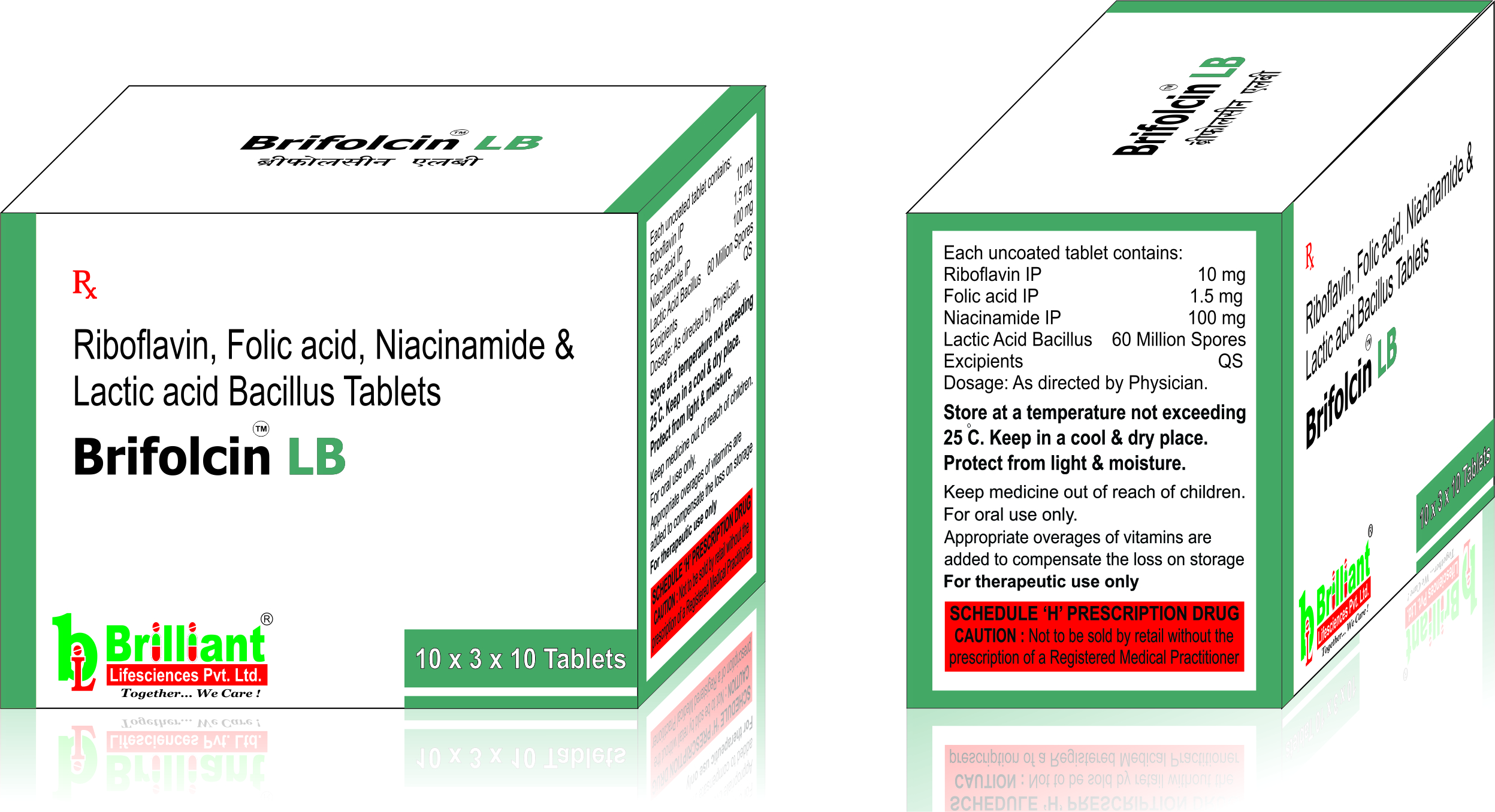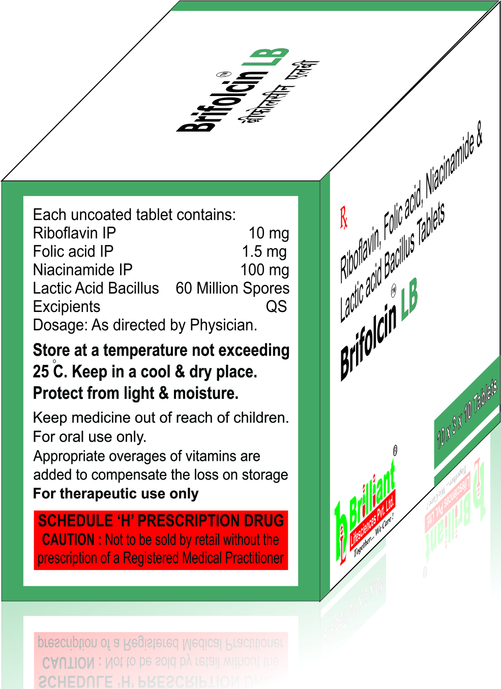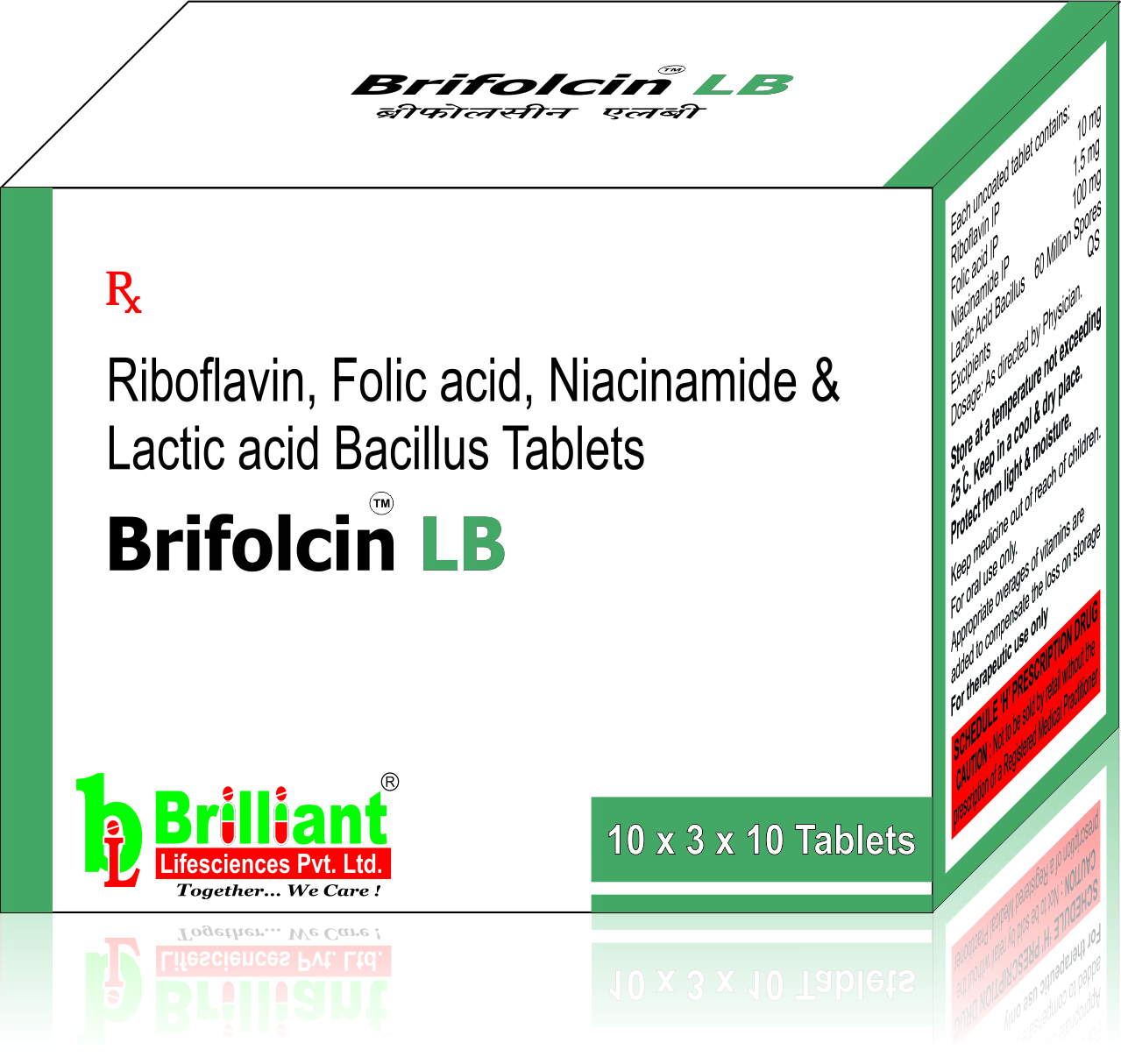 Ribofalvin 10mg + Folic acid 1.5 mg + Niacinamide 100 mg + Lactic acid bacillus 60 million spores is a combination of essential B vitamins that play a crucial role in nerve function, red blood cell formation, and overall brain health. It is commonly used to treat vitamin deficiencies, anemia, and neurological disorders such as neuropathy.