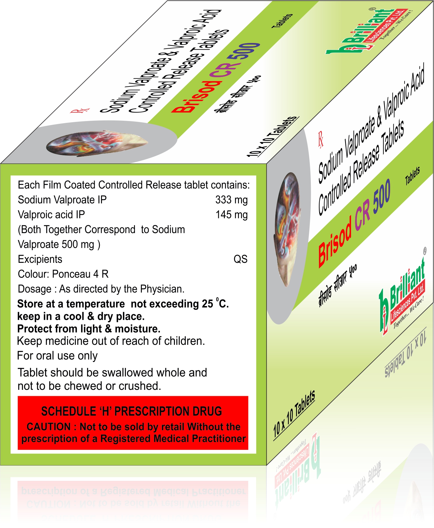 Brisod CR 500 Tablet should be taken with food. Your doctor will decide the correct dose for you. This may increase gradually until your condition is stable. This medicine may take several weeks to work, but it is important to take it regularly to get the benefit. Do not stop taking it, even if you feel fine, unless your doctor advises you to. You may have more seizures, or your bipolar disorder may get worse.