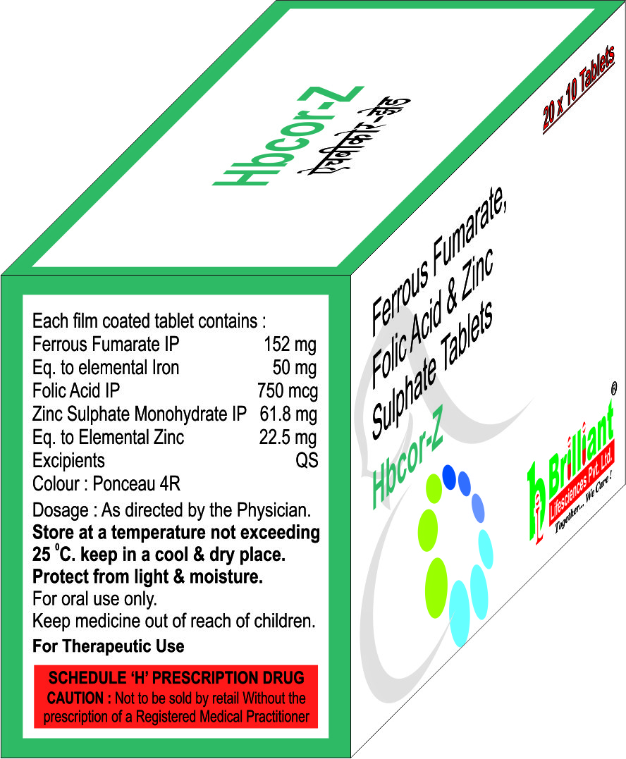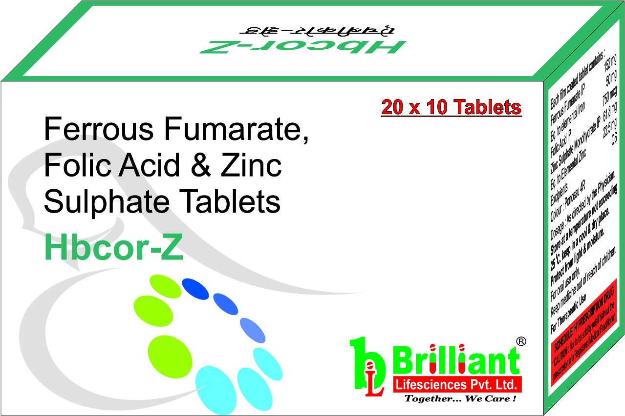 HBCOR-Z Tablet helps to replenish the iron stores in your body and corrects iron deficiency that causes anaemia. It plays a vital role in the formation of red blood cells, which carry oxygen throughout the body. It is also essential in pregnancy due to its role in the development of the unborn baby's brain and spinal cord. Zinc is a micromineral that provides nutrition.