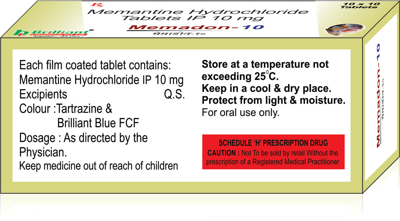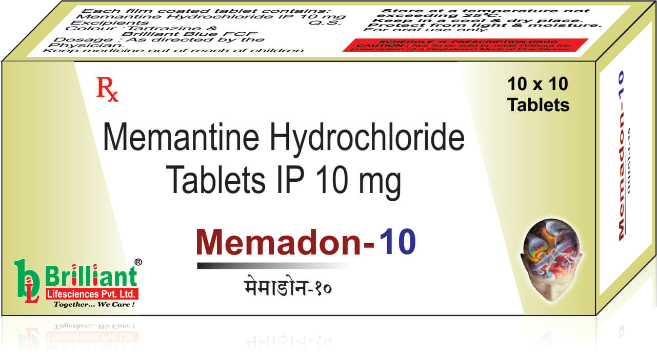 MEMADON 10 Tablet is a medicine used in the treatment of Alzheimer's disease. It helps to slow down the progression of moderate to severe Alzheimer's disease by improving memory and thinking. This medicine works by blocking a chemical messenger involved in the transmission of nerve signals.