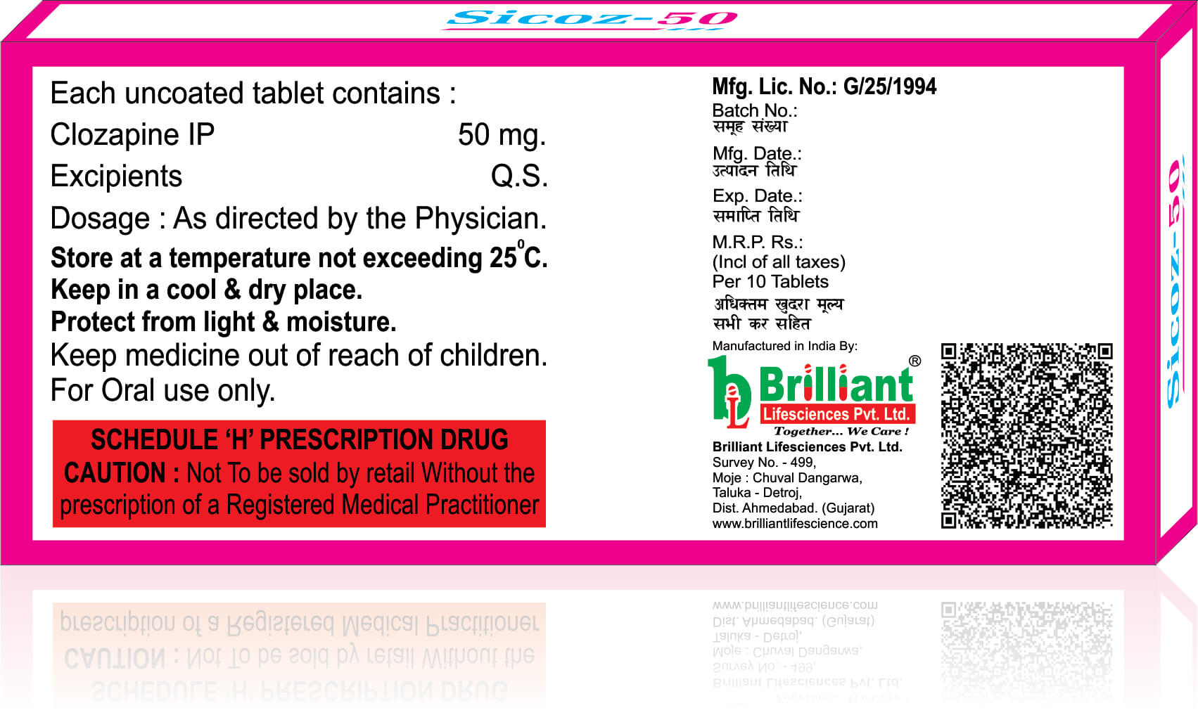 SICOZ 50 Tablet is used in the treatment of schizophrenia (a mental disorder that can result in hallucinations or delusions and also adversely affects a person's ability to think and behave).