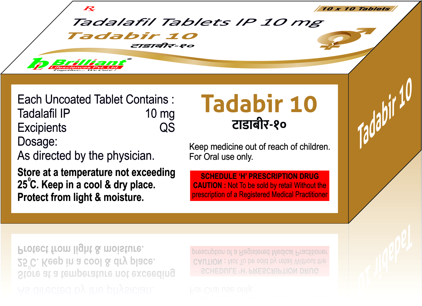 TADABIR 10 Tablet is a phosphodiesterase (PDE-5) inhibitor. It works in erectile dysfunction by increasing blood flow to the penis by relaxing the muscles in penile blood vessels. TADABIR 10 Tablet also relaxes or widens the blood vessels inside the lungs. When the blood vessels relax and widen, it’s easier for the heart to pump blood through the lungs, which reduces blood pressure in the lungs.