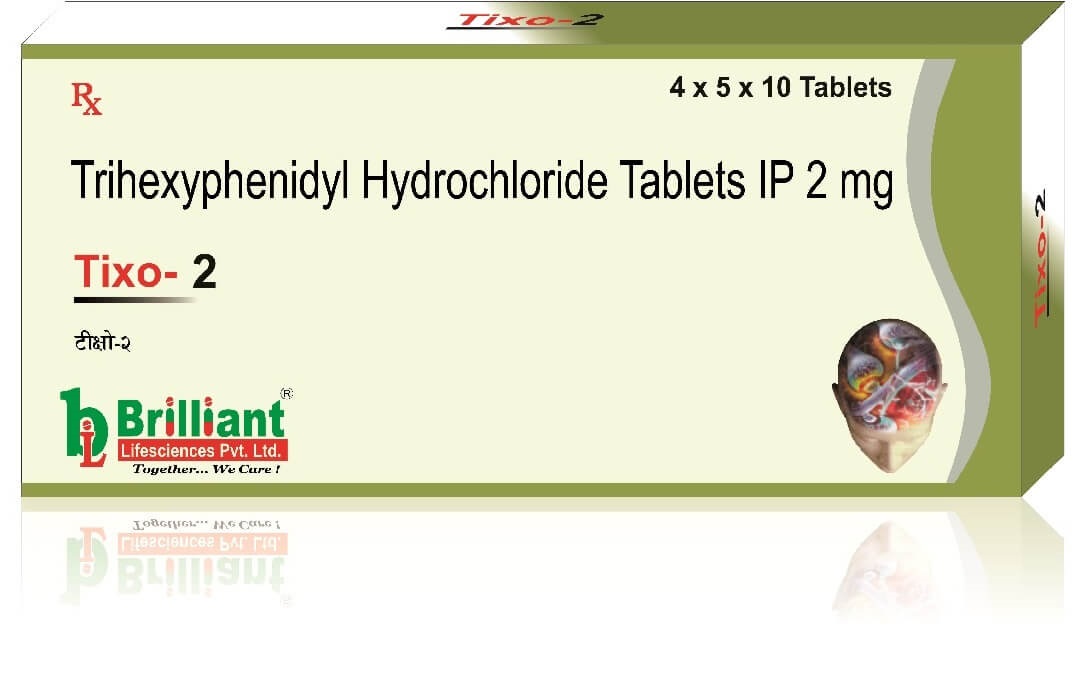 TIXO 2 Tablet is an anticholinergic medication. It works by decreasing the activity of a chemical messenger (acetylcholine) in the brain. This improves muscle control and reduces stiffness in Parkinson's disease.