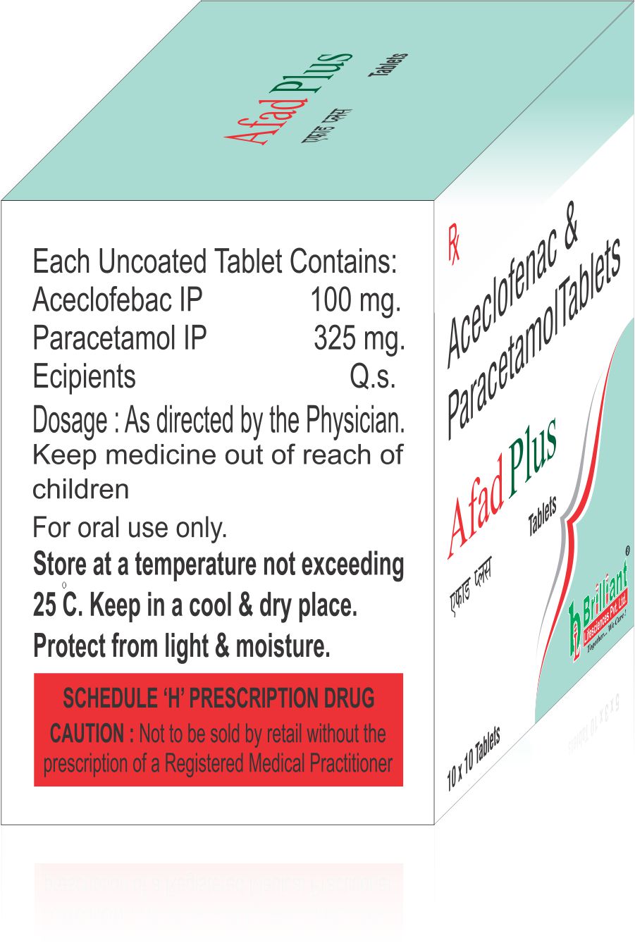 AFAD PLUS Tablet is a combination of two medicines: Aceclofenac and Paracetamol. These medicines work by blocking the action of chemical messengers responsible for pain, fever and inflammation (redness and swelling).