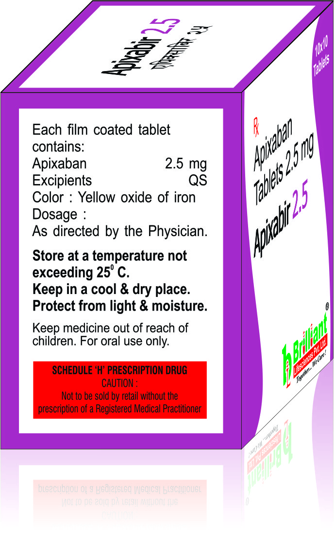 APIXABIR 2.5 Tablet is a medicine known as an anticoagulant or blood thinner. It helps prevent and treat blood clots. It prevents and treats clot formation in the veins of your legs, lungs, brain, and heart. It is used to reduce the risk of stroke and heart attack.