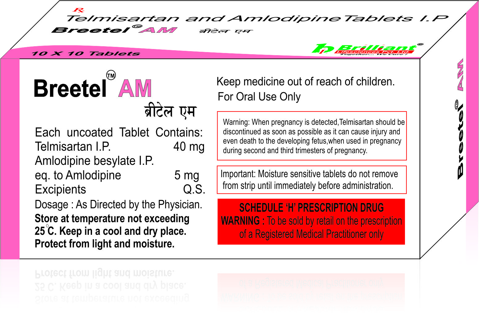 BREETEL AM Tablet contains two medicines, both of which help to control high blood pressure. It lowers the blood pressure by relaxing the blood vessels and making it easier for your heart to pump blood around your body. This will reduce your risk of having a heart attack or a stroke.