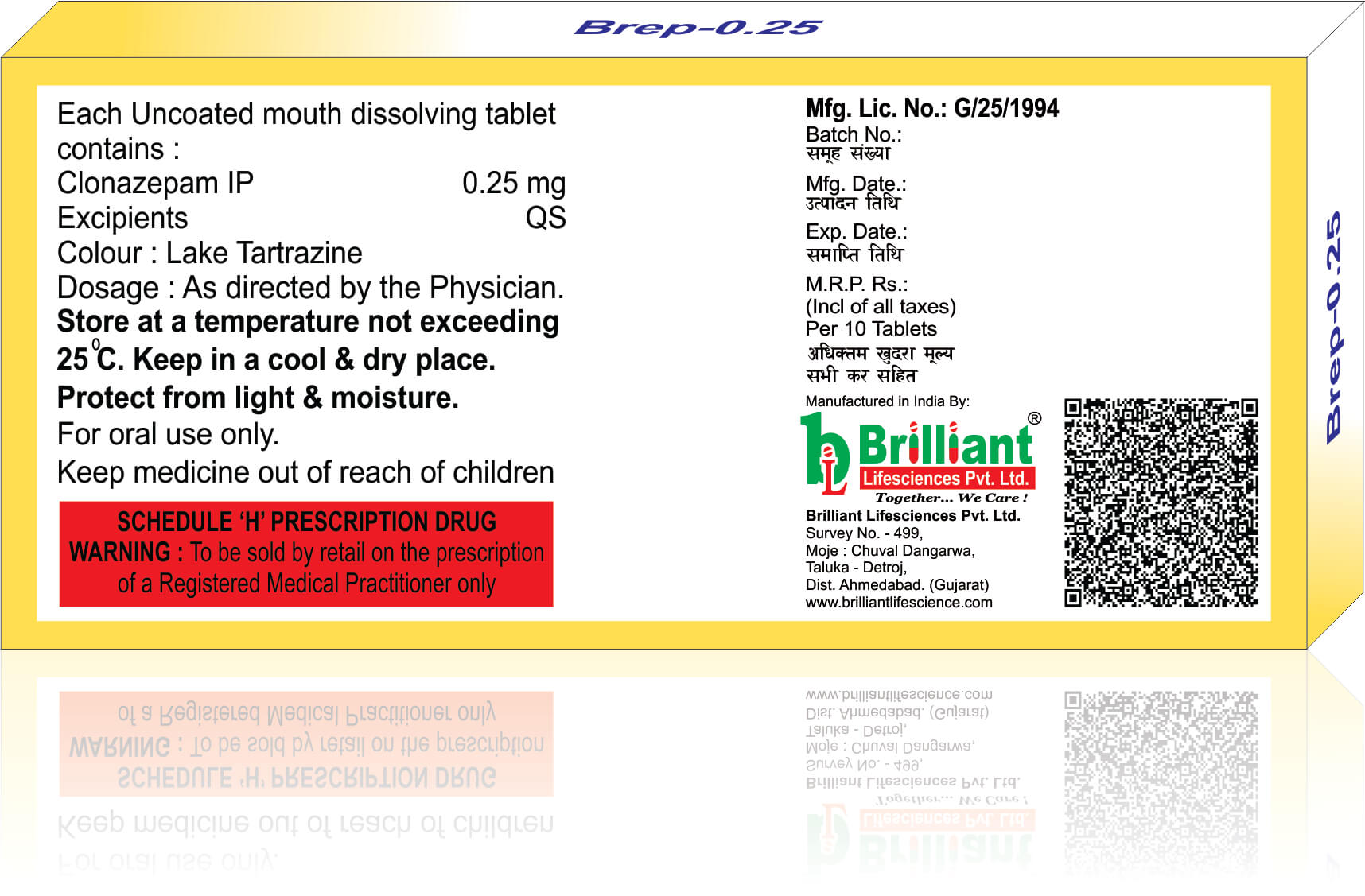 BREP 0.25 Tablet is a prescription medicine used to treat epilepsy (seizures) and anxiety disorder. It helps to decrease the abnormal and excessive activity of the nerve cells and calms the brain.
