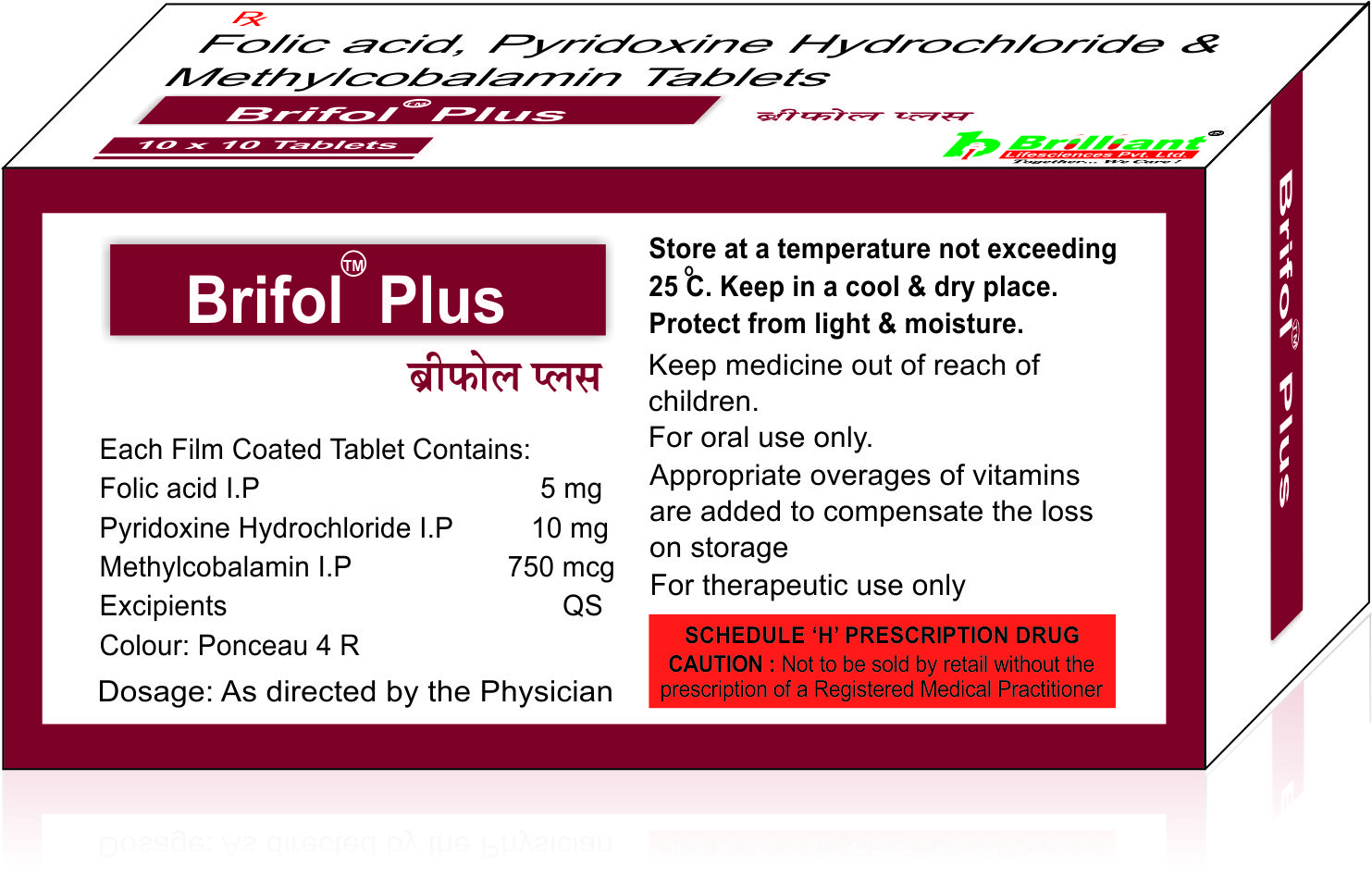 Folic Acid 5 mg and Pyridoxine Hydrochloride 10 mg And Methylcobalamin 750 mcg Tablets