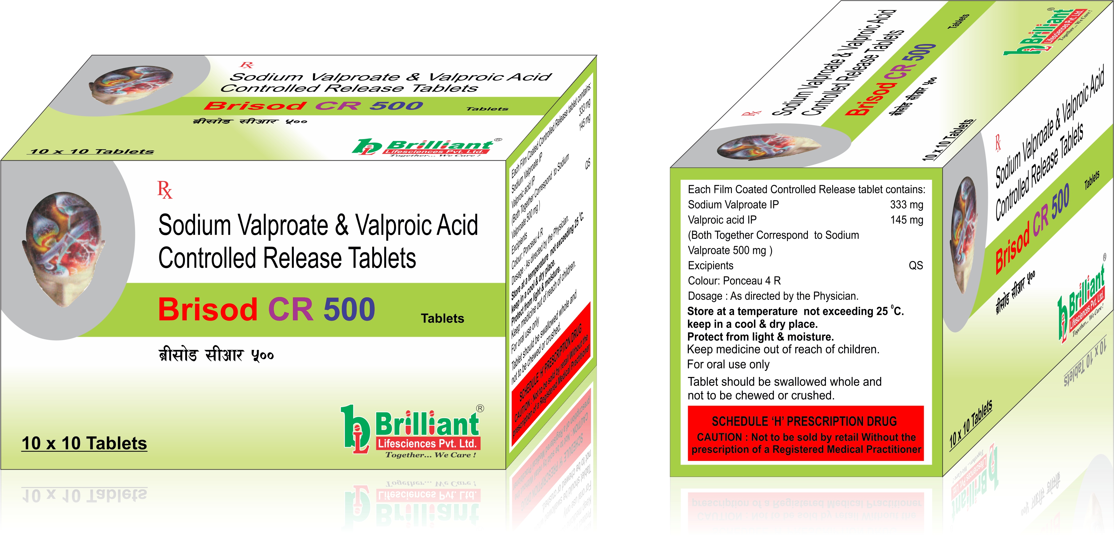 Brisod CR 500 Tablet is a combination of two medicines used to treat epilepsy, a neurological disorder in which there are recurrent episodes of seizures or fits. It controls the abnormal activity of the brain, relaxes the nerves, and hence, prevents seizures or fits.