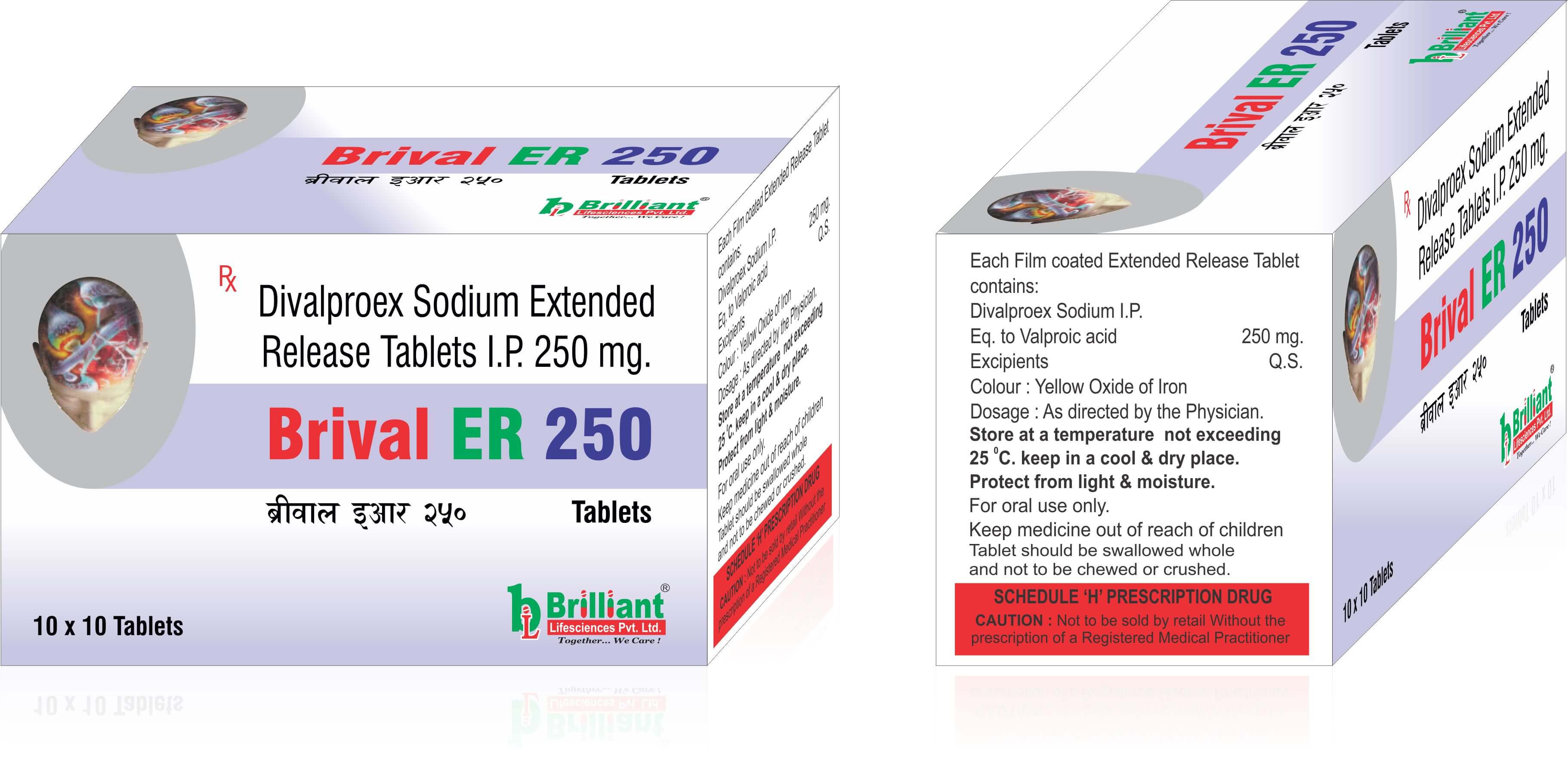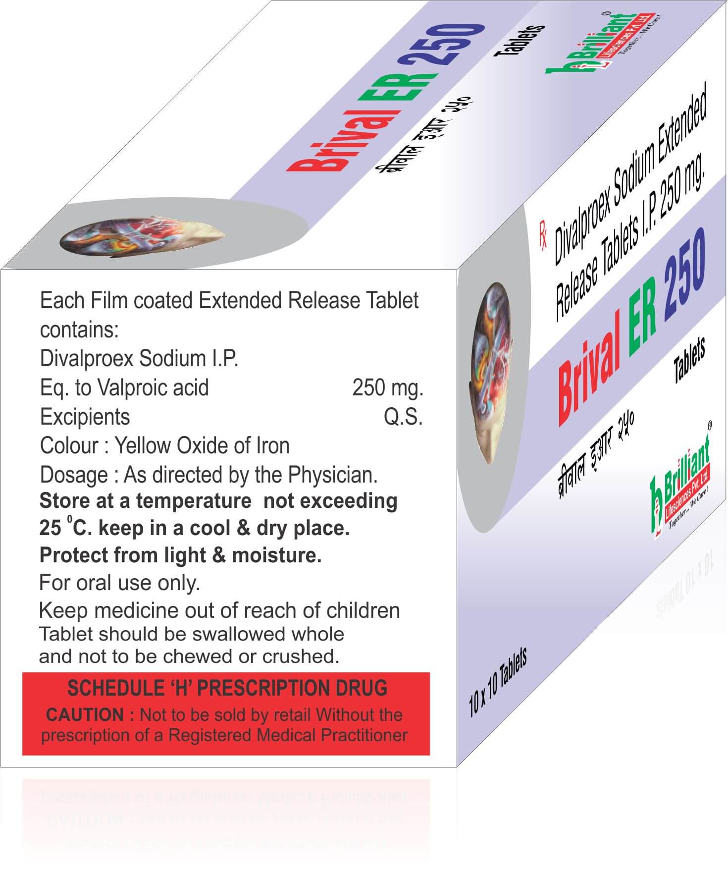 BRIVAL ER 250 Tablet is a medicine used to treat epilepsy. It helps prevent and control seizures (fits). It is also used in the prevention of migraines. Occasionally, it may also be used to treat bipolar disorder.