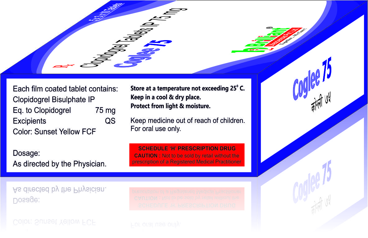 COGLEE 75 Tablet is an antiplatelet medication. It works by preventing platelets from sticking together, thereby decreasing the formation of harmful blood clots. This lowers the chance of heart attack or stroke.