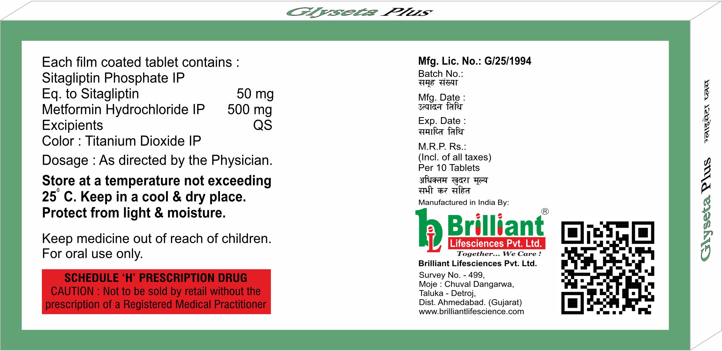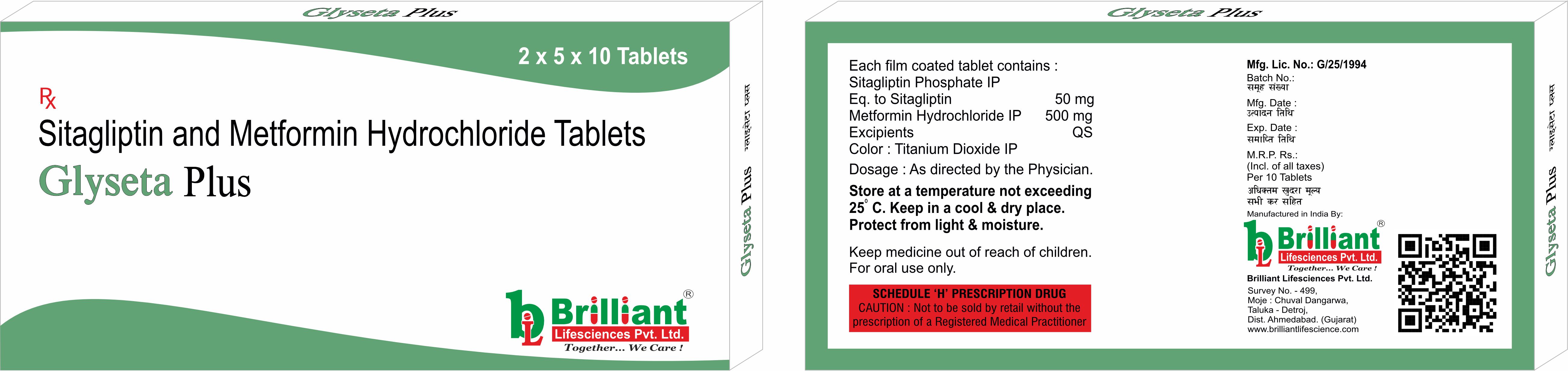 GLYSETA PLUS Tablet is a combination of two medicines: sitagliptin and metformin. Sitagliptin helps your pancreas produce more insulin, facilitates effective use of insulin by the body, and reduces excess sugar that your liver makes. Metformin is a biguanide that lowers glucose production in the liver, delays glucose absorption from the intestines, and increases the body's sensitivity to insulin. Together, they provide better control of blood sugar.