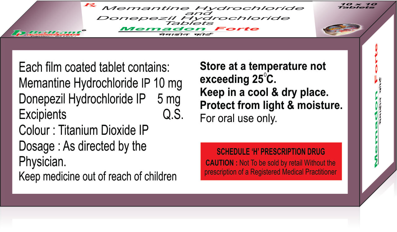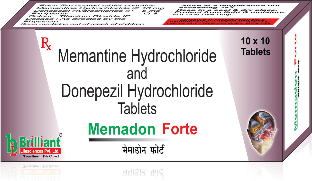 MEMADON FORTE Tablet is a combination of two medicines: Donepezil and Memantine which treat Alzheimer's disease. Donepezil is a cholinesterase inhibitor while Memantine is an NMDA inhibitor. Together, they balance the levels of chemical messengers in the brain and help in the transmission of nerve signals.