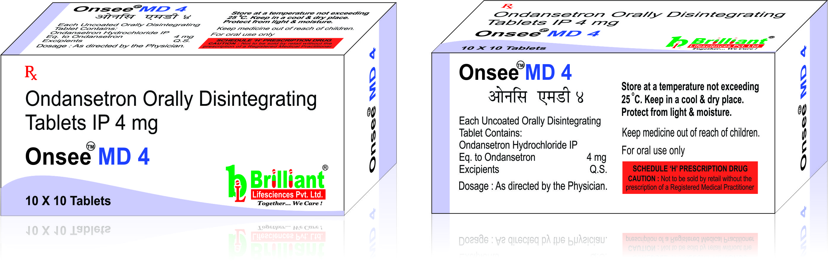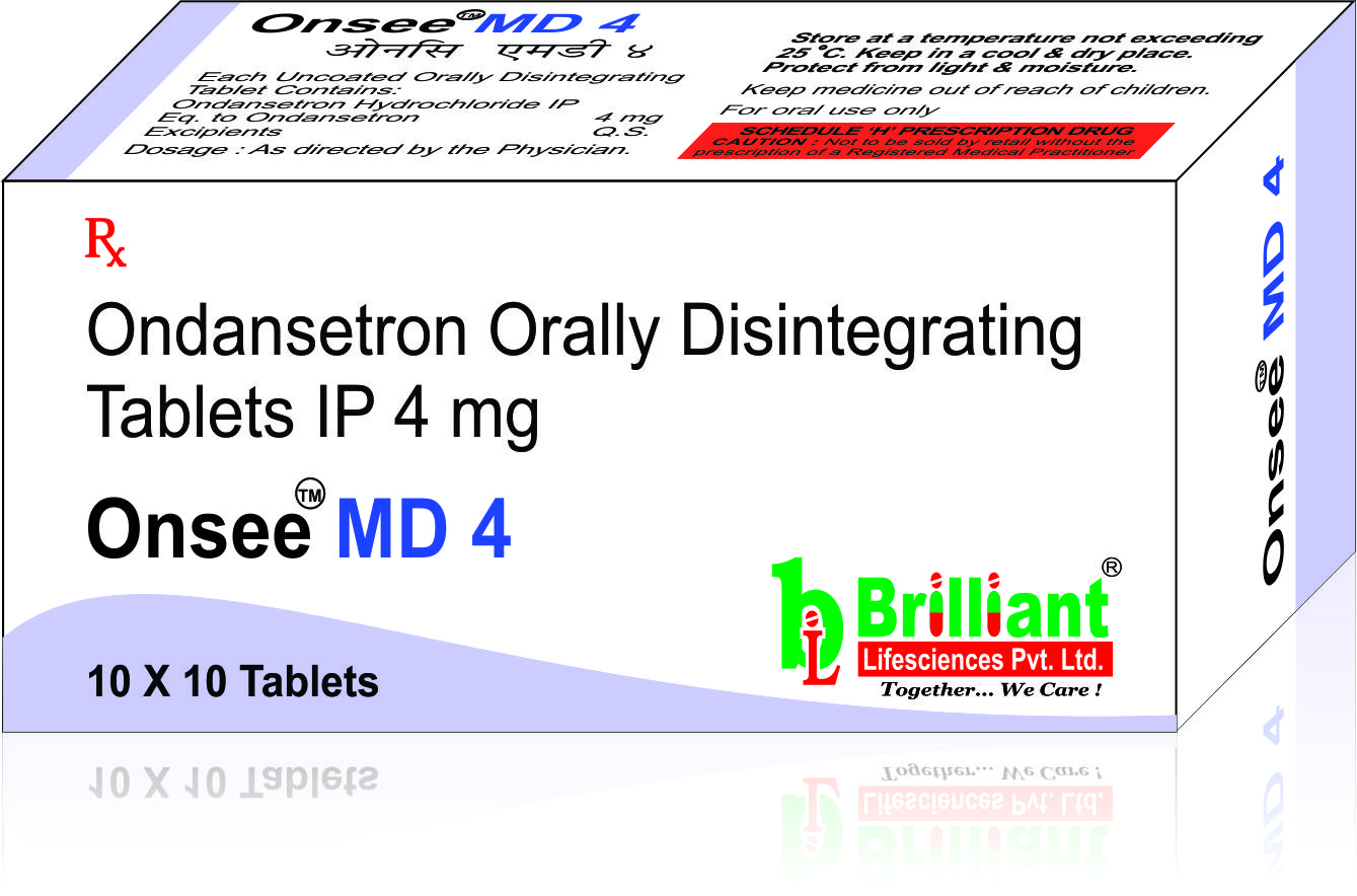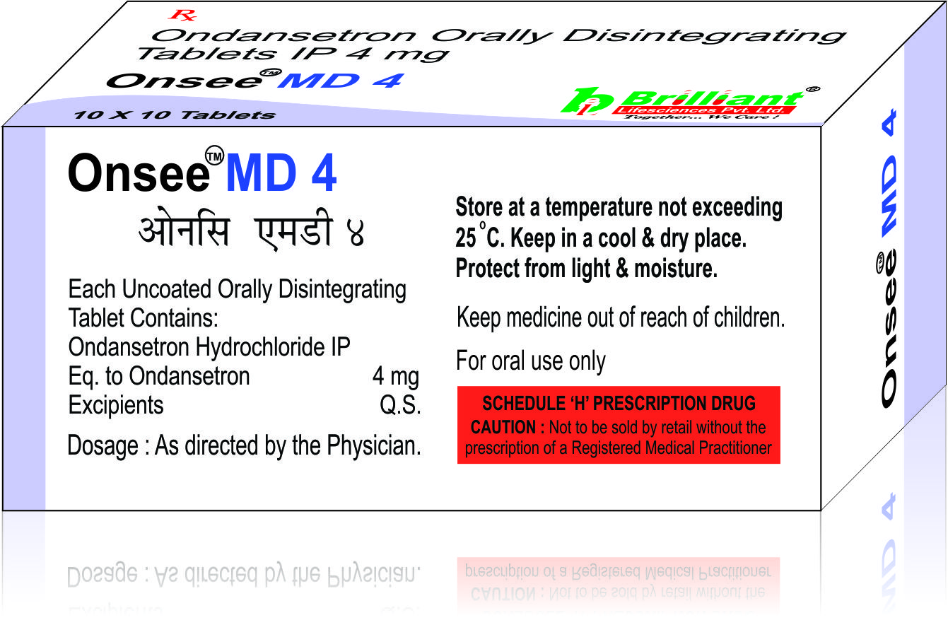 ONSEE MD 4 Tablet is an antiemetic medication. It works by blocking the action of a chemical messenger (serotonin) in the brain that may cause nausea and vomiting during anti-cancer treatment (chemotherapy) or after surgery.