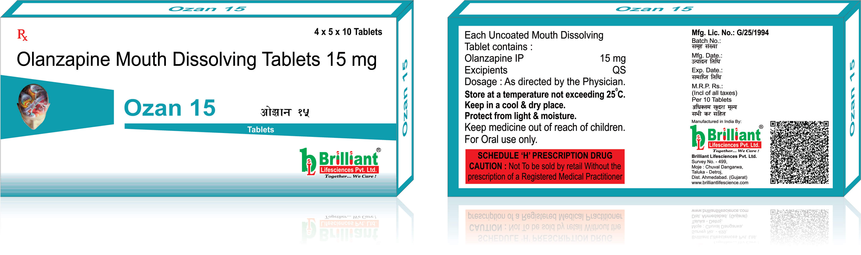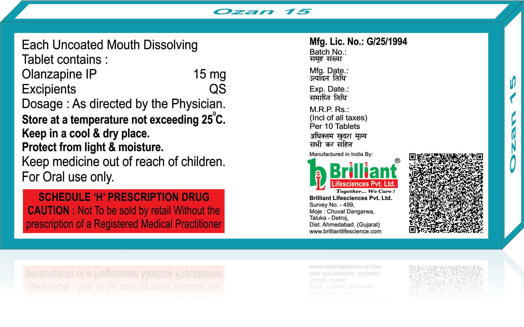 OZAN MD 15 Tablet is used in the treatment of schizophrenia (a mental disorder that can result in hallucinations or delusions and also adversely affects a person?s ability to think and behave) and mania.