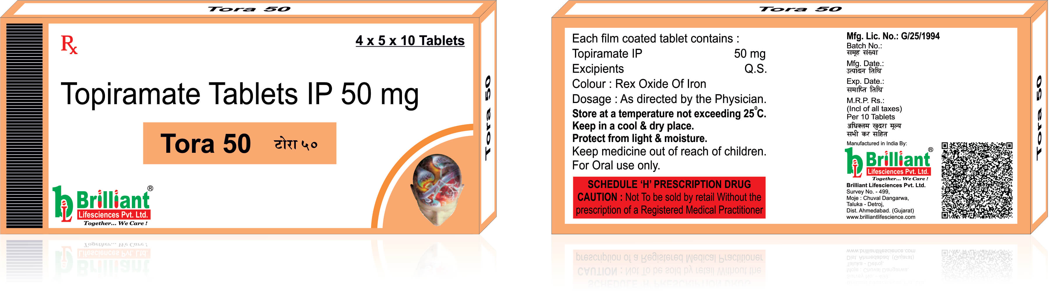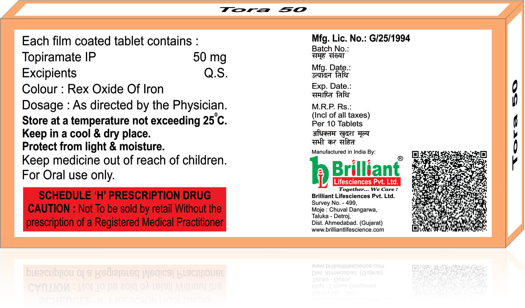 TORA 50 Tablet is an antiepileptic medication. It controls seizures or fits by decreasing the abnormal and excessive activity of the nerve cells in the brain.